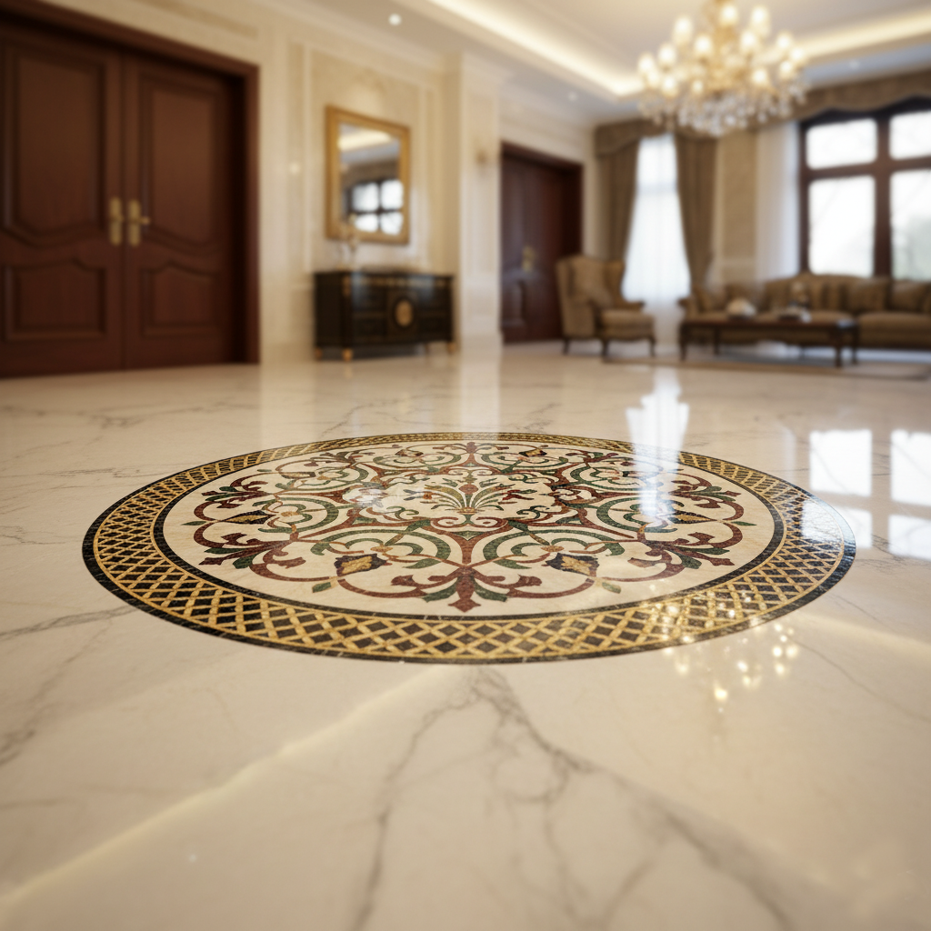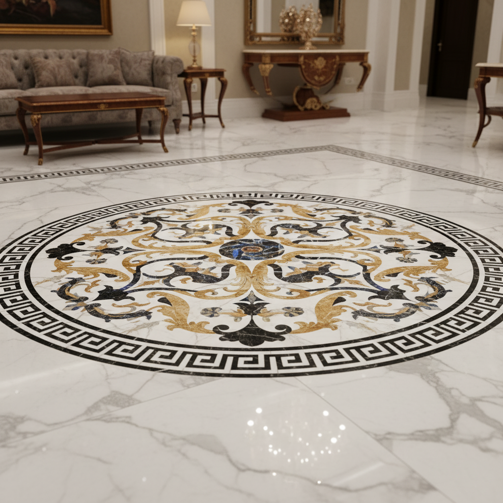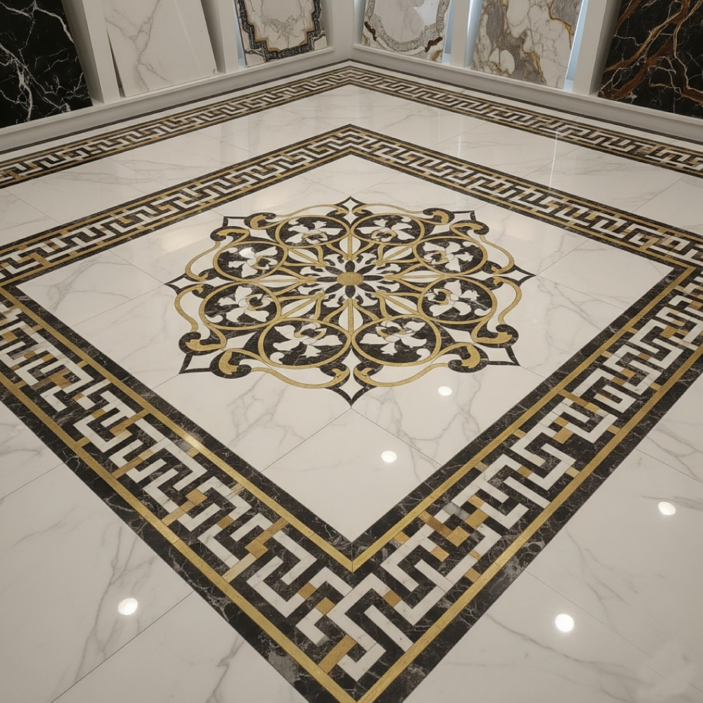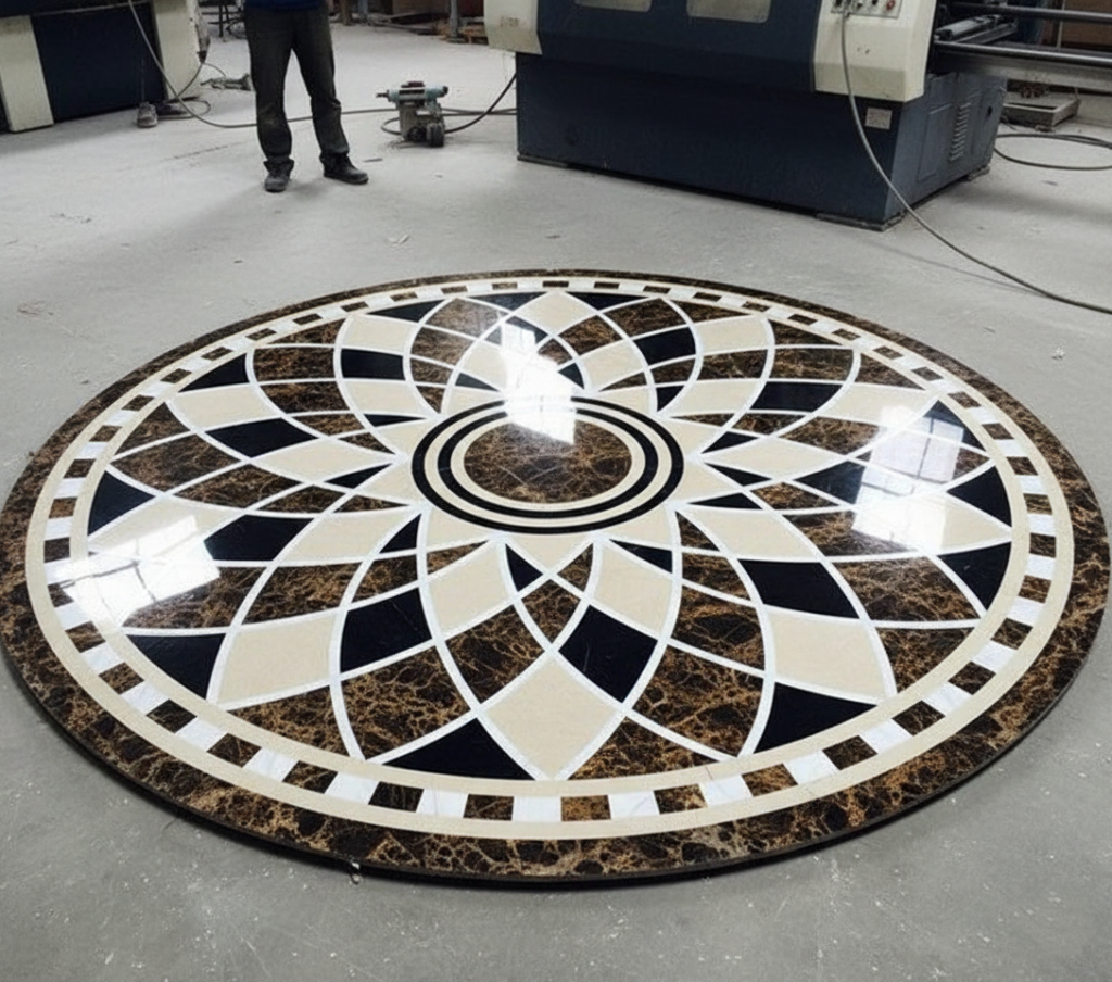 At our factory, we combine state-of-the-art waterjet technology with expert craftsmanship to create artistic and highly customized marble designs. Unlike traditional cutting methods, waterjet cutting uses high-pressure water mixed with abrasives to achieve exceptionally precise cuts without heat or structural damage. This allows us to bring even the most complex patterns to life with unmatched detail and perfection.